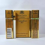 نظر شخصی: سیگار طلایی رنگ سلطنتی فرم، فیلتر طلایی با خط نوشته ی مشکی اون رو خیلی گنگ و خاص کرده، خوراک کلکسیون بازا، مخصوص جلب توجه تو اماکن عمومی و مهمونی ها، تندی خاصی داره، تو مایه های تریژر مشکی کینگ سایزه، از اون دسته سیگارایی هست که تعدادش خیلی کمه و زود تموم میشه تو بازار، در مجموع از اون محصولاتی هست که ظاهرش خیلی گرون تر از قیمتیه که داره.
